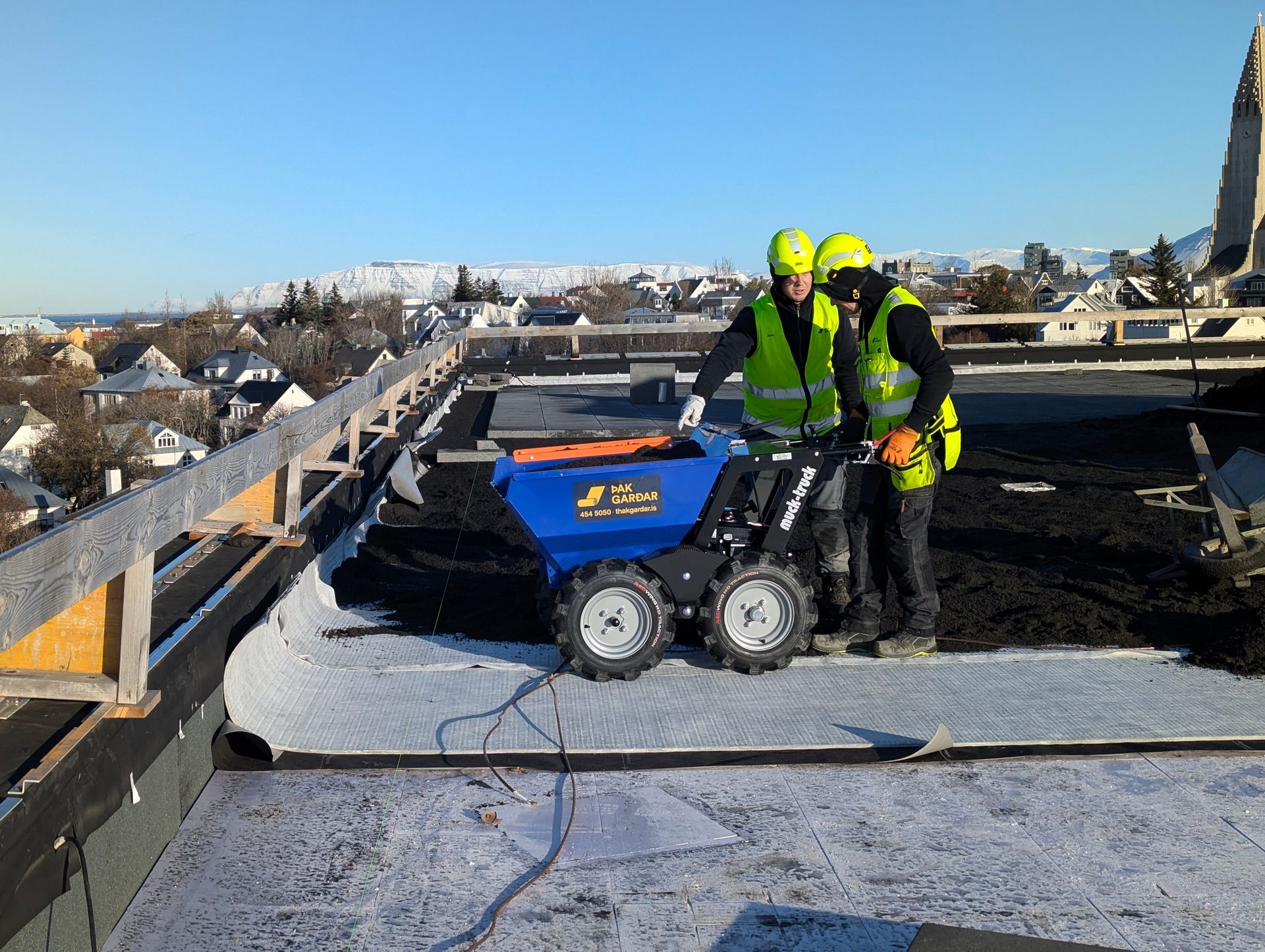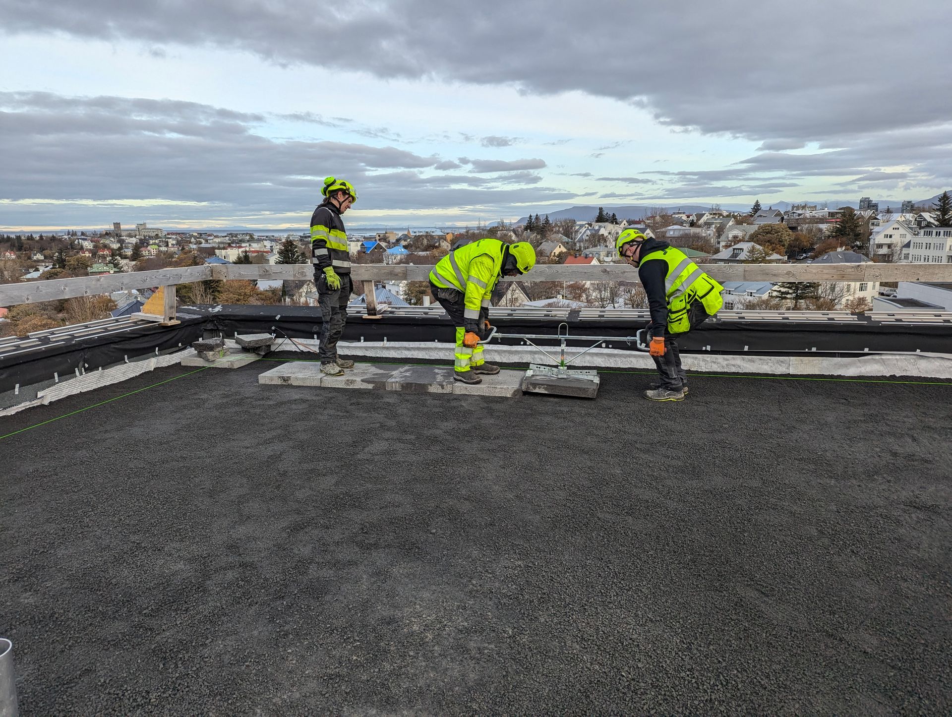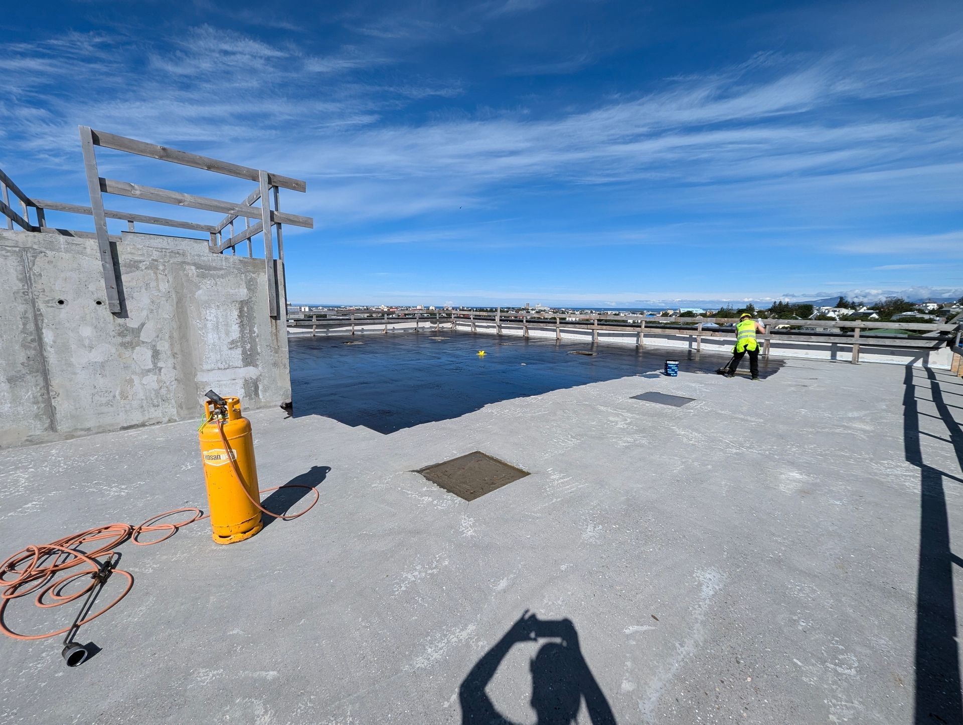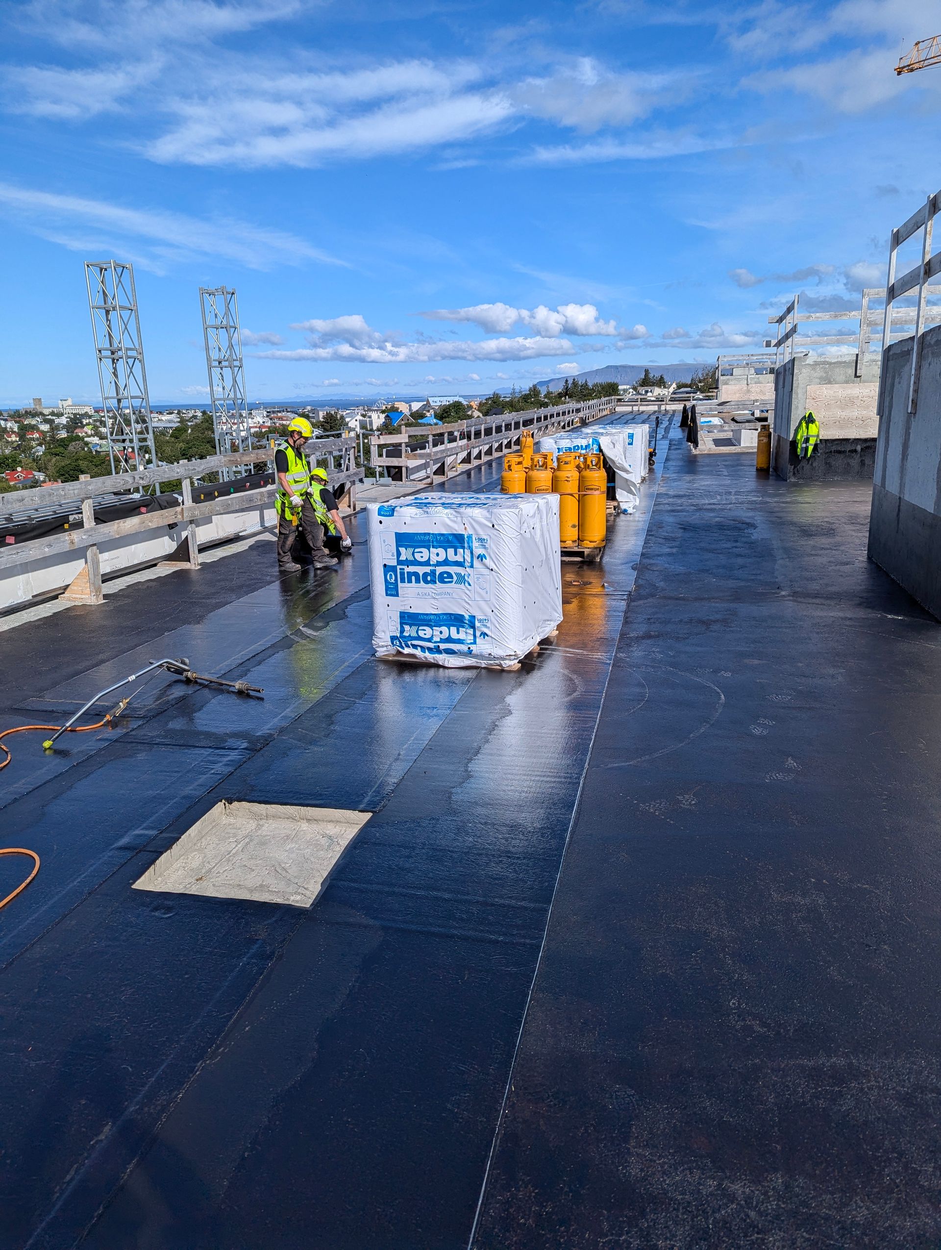 Alefli ehf fékk okkur með sér að leggja asfaltspappa á þakið sem þeir voru að endurgera.